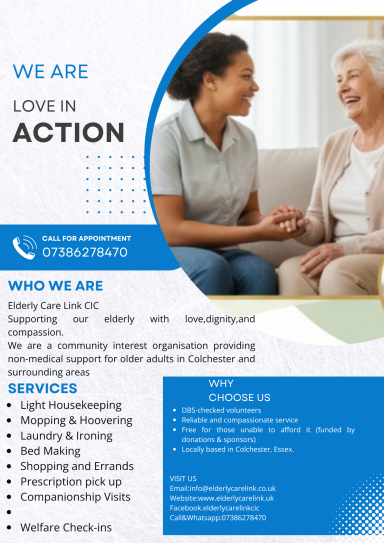 Elderly Care Link CIC is a compassionate community interest company providing personalized companionship, practical support, and home care services to enhance the wellbeing and independence of older adults.